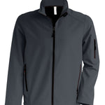 Softshell 3 layer bonded fabric. Breathable up to 3000 gsm/24h & water resistant up to 8000 mm. 95% Polyester 5% Elastane outer layer, performance membrane mid layer & micro fleece thermal inner layer. Zip through front. 2 zip closing side pockets. 1 zip closing left sleeve pocket. BSCI certified. SEDEX certified.