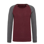 - Organic two-tone crew neck raglan sleeve sweatshirt.