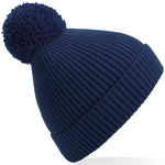 Oxford Navy - Engineered knit ribbed pom pom beanie