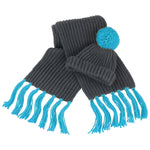 Great style with and colour combinations chunky soft knit pom pom hat and matching scarf set.