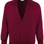 Easycare 4 self-coloured button cardigan. Coverseamed stole with knitted cuff and welt. Herringbone taped neck. Woven label.