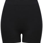 Fitted, high-waisted stretch shorts in melange fabric. Seamless knit for comfort. Blind stitching at hems and grown-on waistband. Tombo tear-out label. BSCI certified. WRAP certified.
