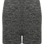Fitted, high-waisted stretch shorts in melange fabric. Seamless knit for comfort. Blind stitching at hems and grown-on waistband. Tombo tear-out label. BSCI certified. WRAP certified.