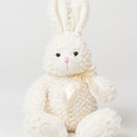 Hop along with Bunny with it's super-soft, cream coloured fabric with self-coloured ribbon, inner ears and paws.