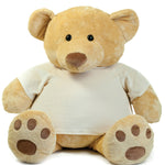 Supersize honey bear. Honey coloured soft plush bear. Contrast nose and feet detail. Comes dressed in a cream velour t-shirt. Complies with EN71 European Toy Safety regulations. Remove all hang tags and their fasteners before giving these items to a child. Suitable for children of all ages. BSCI certified. SEDEX certified.