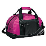 Sized to fit the gym locker, this duffel opens wide to reveal a roomy interior that holds shoes and a change of clothes.