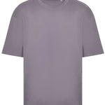 Oversized fit with side seams. Short sleeves. Ribbed crew neck style, with taped neck. Set-in sleeve. Size label only, for easy rebranding – colour-coded black for unisex. Combed ringspun cotton for ultra comfort. Surface excellent for print or embroidery. Twin-needle stitching detail on sleeves and bottom hem. Vegan certified.