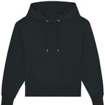 Set-in sleeve. Double layered hood in self-fabric. Flat drawcords in matching body colour with metal tipping and metal eyelets. Inside herringbone back neck tape. Self-fabric half-moon at back neck. Single needle topstitch at neckline. 2x2 rib at sleeve hem and bottom hem. Armhole, sleeve hem and bottom hem with twin-needle topstitch. Kangaroo pocket at front. Relaxed fit with 350gsm brushed fabric. Vegan certified. Fair Wear certified. GOTS certified. Oeko-Tex certified.