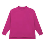 Raglan sleeve. 1x1 rib at neck collar and sleeve hem. Self-fabric at bottom hem. Inside herringbone back neck tape. Slit at side seams with single herringbone facing. Self-fabric half-moon at back neck. Single-needle topstitch on all seams. Back length longer than front length. . Oeko-Tex certified. Vegan certified. Fairwear Foundation certified. GOTS certified.