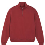 Unisex boxy dry hand feel quarter zip sweatshirt. Set-in sleeve. Neck collar in self-fabric. Herringbone tape at inside back neck and at inside of zip. Quarter zip at centre front. 2x1 rib at sleeve hem and bottom hem. Armhole, sleeve hem and bottom hem with twin-needle topstitch. GOTS certified. Fairwear certified. Vegan certified.