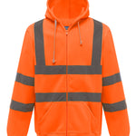 Hi Vis Yellow and Orange conforms to EN ISO 20471 Class 3 and Orange and Orange/Navy is also RIS-3279-TOM Railway use certified. Made of 280 gsm water-repellent anti-pill single jersey knitted soft-feel polyester fabric. Two 5cm width reflective tapes around the body and arms and over each shoulder. Drop hood with draw cord adjustment. Full length front zip. Two Handwarmer pockets. Twin needle stitching throughout.