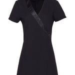 The "Rose" features an elegant self -coloured satin trim across the main body of the tunic to create the impression of a wrap- over style. The trim comes down from the shoulder, across the chest and finishes under the bust to create a flattering V neck finish on the neckline. Bust darts and side vents make this a very flattering tunic. BSCI certified. Reach certified.