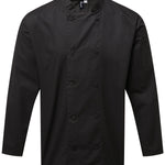 A long sleeve chef's jacket constructed with Coolchecker® fabric. The centre back panel is made from the Coolchecker® fabric which offers exceptional moisture management and wicking properties so chef stays fresh and cool during service. A wrap over fastening with ten self-fabric buttons, a mandarin collar and a useful double pen pocket on the left arm.
