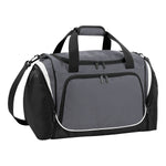 Detachable adjustable shoulder strap with pad. Shoe tunnel/wet pocket. Internal valuables pocket. Elasticated bottle loops. Zippered end pockets. Internal mesh pockets. Padded hand grip. Reach certified.