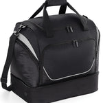 Designed to fit most lockers. Dual compartment design. Structured, ventilated base compartment. Front pocket designed for easy decoration. Zippered end pockets. Internal valuables pocket. Internal mesh pockets. Detachable adjustable shoulder strap with pad. Padded hand grip. Protective base feet. Reach certified.