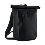 Delivering all the sleek style benefits of a relaxed roll-top backpack, with the addition of waterproof PU-coated fabric, this is where fashion meets function. This is a must for those who commute on foot or by bike, complete with a waterproof main compartment, so things like technology and paperwork stay dry and protected, whatever the weather. Also available in a larger version (QS575), this streamlined bag offers a more compact silhouette for practical, contemporary styling.