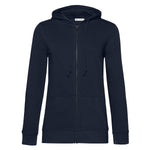 Trendy organic zipped hooded sweatshirt with retail fashion oriented look and feel. Strong styling with great fitting and perfect length. Side seams ensure the best fit and a feminine silhouette. Visible "Hi, I'm Organic" neck tab to highlight the organic value of the garment. Easy branding solution - B&C No Label Solution. Inside single Jersey halfmoon in back to allow easy branding personalisation. Qualitative herringbone neck tape. Retail like features: covered metal zip, single Jersey lined hood, qualitative herringbone neck tape and fashionable drawcord. Vegan certified. Fair Wear certified. Recycled Blended Claim certified. Oeko-Tex certified.