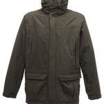 Waterproof and breathable Isotex 5000 coated polyester twill microfiber. Part mesh part polyester taffeta lined. Taped seams. Interactive Concealed hood with adjuster. Studded double stormflap. Adjustable cuffs. Internal map pocket. 2 zipped chest pockets. 2 lower patch pockets with side hand warmer entry. Internal mobile phone pocket. Adjustable shock cord waist and hem system. Internal zipped embroidery access.