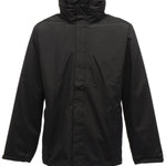 Stay warm and dry in this men's waterproof jacket. The jacket is finished with a durable protective coating to help shield from wind and rain. It's also lined with a polyester mesh for added comfort. The jacket is made from a peached polyester fabric for a fashionable design difference. An internal pocket with earphone cord access enables you to listen to your favourite tunes with ease.