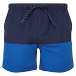Panelled swim shorts. Tie waist. Two eyelets. Striped tie cord with caps. Elasticated waist. Mesh inner lining. Two side pockets. Single zip-fastening pocket on the back. Certified Sedex.Product contains no branded neck label.* Removable Kimble or looped garment tags. Inner seam label holds important product information on one label with a second label containing brand information which can be cut-away.*Please note old stock may contain a fixed branded label