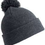 Heavyweight, double thickness knitted beanie with deep fold cuff and pom pom decoration. Oeko-Tex certified.