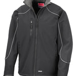 Water resistant seamless shoulders. Windproof. Result® 3 layer softshell technology. Breathable. Fully waterproof hood. Soft 2-way stretch fabric. Comfortable active cut. Concealed fully lined hood with tear release closing chin guard, wired visor and shockcord adjusters. YKK full front zip fastening. 2 mesh lined zip closing side pockets for extra venting, 1 mesh lined zip closing chest pocket for extra venting, 2 large inside pockets and 1 inside phone pocket. Easy open zip pullers. Adjustable shockcord hem. Tear release adjustable cuffs. Inner storm flap. 3M™ reflective safety piping to shoulders and sleeves. Zip opening underarm vents with mesh cover. Concealed access for print and embroidery. Waterproof fabric.Decoration Guidelines:Decorating methods: Embroidery. Decorators access point: Concealed left chest zip.