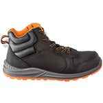 CE EN 20345:2011 S3 SRC. Anti-static. Water-resistant. Composite midsole for underfoot protection. Padded ankle support (PU leather outer). Energy absorption heel. SRC slip resistance. Composite toecap. Mesh-lined. Oil-resistant. Heel loop. Unisex injection shoe mould.