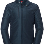 With unique features, this Russell cross jacket is reliable and trustworthy - the basis for a good team. Make this design your new team member and take your corporate clothing to a new level. The thermal insulating cross jacket consists of an ultra-modern insulation by Dupont™ Sorona®. 37% of the filling is made from sustainable vegetable material. The PFC-free finish Aquapel by Nanotex® ensures that rain and moisture rolls off in a completely natural way.
