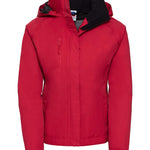 Water resistant garment. PU coated with critically taped seams, fabric is waterproof to 2000mm and breathable: 2000gsm per 24 hours. Active fit, articulated elbows, raglan sleeves and concealed hood. Advanced features include zipped handwarmer pockets with internal pocket for phone/MP3, storm flap with rain channel, reversed zips and soft touch inner collar. Concealed 3 piece hood, fully lined with concealed decoration access at hem. YKK zip. BSCI certified.