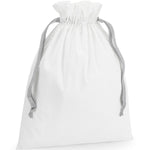100% Brushed cotton, 140gsm (4.1oz/yd²). Perfect for seasonal gifting. Multipurpose use. Contrasting colour ribbon. Ribbon drawstring closure.TearAway label for easy rebranding.