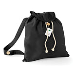 Adjustable shoulder straps. Drawcord closure. Wooden buttons. Grab handle.