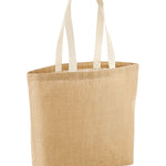 The innovated unlaminated jute tote is made with a tighter and smoother weave fabric and with cotton webbed handles, and is the ideal shopping companion.