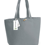 Premium heavyweight fabric. Natural wooden toggle closure. Cotton webbing carry handles. Can be carried by hand or over the shoulder. Handle length: 60 cm.