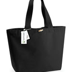 Premium heavyweight fabric. Natural wooden toggle closure. Cotton webbing carry handles. Can be carried by hand or over the shoulder. Handle length: 60 cm. GOTS certified.