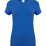 Feel good women's stretch t-shirt with enzyme wash for unique soft hand-feel. 96% cotton, 4% elastane for improved fit, comfort and shape retention. Modern long-line fit. Crew-neck with back neck binding and soft stretchy rib neckline. Features tear out label. SEDEX certified. Oeko-Tex certified. BSCI certified. Vegan certified.
