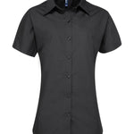 Ladies Easycare short sleeve blouse with improved wear and appearance. Supreme poplin. Soft collar styling. Rounded bottom hem. Fitted styling with bust and back darts. Made from OEKO-TEX® Standard 100 fabric. WRAP certified. BSCI certified. Reach certified. SEDEX certified.