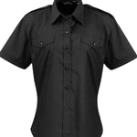 Women's short sleeve easycare pilot shirt. Stiffened collar. 2 chest pockets with button flaps. Combined pen pocket on left breast pocket. Short sleeves. Epaulettes on shoulders. WRAP certified. BSCI certified. Reach certified. SEDEX certified.