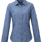 Indigo Denim - Women's poplin cross-dye roll sleeve shirt