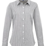 Black/White - Women's Microcheck (Gingham) long sleeve cotton shirt