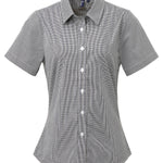 Black/White - Women's Microcheck (Gingham) short sleeve cotton shirt