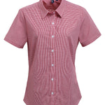 Red/White - Women's Microcheck (Gingham) short sleeve cotton shirt
