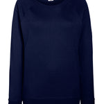 Ladies Lightweight unbrushed (French Terry) Sweatshirt with raglan sleeves. Shaped side seams for a feminine fit, neck waist and cuff in cotton/Lycra® rib. WRAP certified.