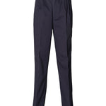 Teflon® stain resistant coating. Double pleat front. Slanted side pockets and two back welt pockets. Straight hem.