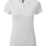 A popular style for service staff, this women’s short sleeve t-shirt is made from an eco-friendly combination of recycled polyester and sustainable cotton. Designed with a single button on the placket and a narrow banded collar, this style has a soft feel to the fabric.