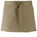 A popular style of apron seen in many bars and restaurants, this short waist apron has three open pockets and comes in 24 colours from the Premier 'Colours Collection.' The pockets are great for carrying payments terminals and tablet devices.