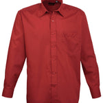 A men’s long sleeved classic fit Poplin shirt available in 27 colours from the Premier 'Colours Collection.' This classic work shirt has a stiffened formal cut collar which accommodates a ties perfectly. The left breast pocket and self-fabric buttons down the placket and cuffs makes for a smart and stylish everyday shirt which carries Premier's easy care label.