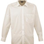 A men’s long sleeved classic fit Poplin shirt available in 27 colours from the Premier 'Colours Collection.' This classic work shirt has a stiffened formal cut collar which accommodates a ties perfectly. The left breast pocket and self-fabric buttons down the placket and cuffs makes for a smart and stylish everyday shirt which carries Premier's easy care label.