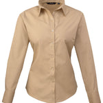 An stylish long sleeved ladies Poplin blouse that comes in 27 colours from Premier's 'Colours Collection.' This blouse offers the wearer a semi-fitted feminine styling with a soft collar, bust, back darts and a rounded bottom hem. A great all-round every day work blouse.