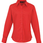 An stylish long sleeved ladies Poplin blouse that comes in 27 colours from Premier's 'Colours Collection.' This blouse offers the wearer a semi-fitted feminine styling with a soft collar, bust, back darts and a rounded bottom hem. A great all-round every day work blouse.