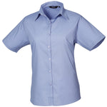 A ladies short sleeved Poplin blouse with semi fitted styling, available in 30 colours. The blouse features soft collar styling with bust and back darts and a rounded bottom hem for an attractive piece of workwear for women.
